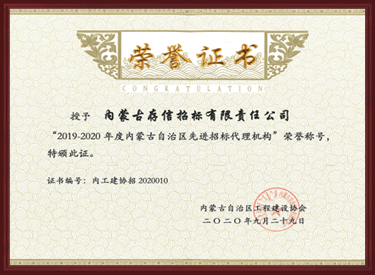 2019-2020年度內(nèi)蒙古自治區(qū)先進(jìn)招標(biāo)代理機(jī)構(gòu)