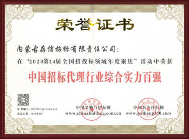 中國招標(biāo)代理行業(yè)綜合實(shí)力百強(qiáng)