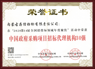 中國政府采購項(xiàng)目招標(biāo)代理機(jī)構(gòu)30強(qiáng)