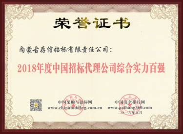 2018年度中國招標(biāo)代理公司綜合實(shí)力百強(qiáng)
