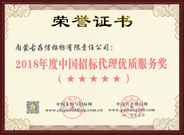 2018年度中國招標(biāo)代理優(yōu)質(zhì)服務(wù)獎(jiǎng)