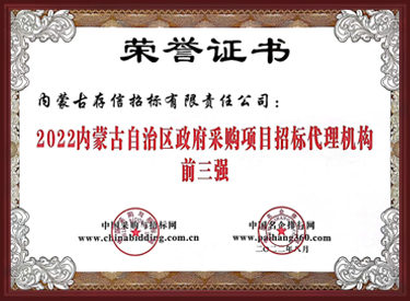 2022內蒙古自治區(qū)政府采購項目招標代理機構前三強