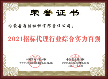 2021內蒙古自治區(qū)招標代理公司前三強