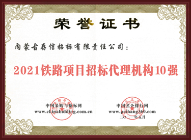 2021鐵路項目招標代理機構10強